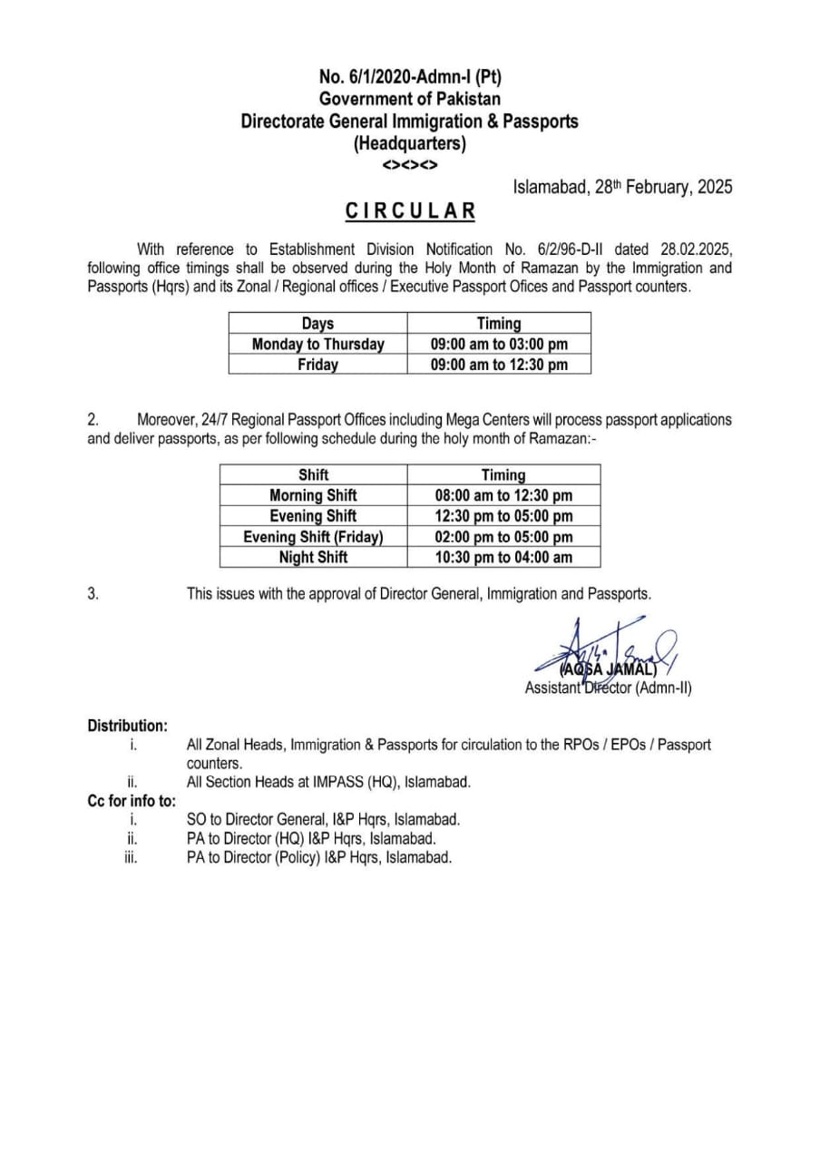 | 1 | 28 Feb 2025 | Revised Office Timings for the Holy Month of Ramazan. | 6/1/2020-Admn-I(Pt) |