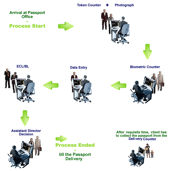 - After allowing go-ahead by Assistant Director, the applicant may leave the Passport Office, as the process is complete, by taking token generated at Step 2.