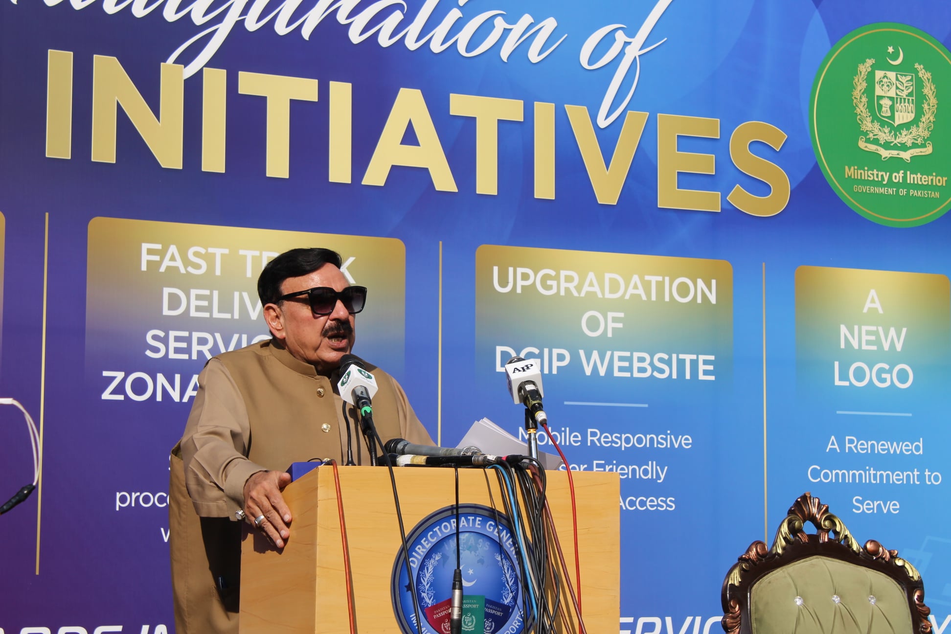 Federal Minister for Interior, Mr. Sheikh Rasheed Ahmad visited DGIP, Headquarter on 08 December, 2021 for inauguration of various initiatives of Directorate General Immigration & Passports for public facilitation. On this occasion Dr. Naeem Rauf, Director General, Immigration & Passports briefed about following initiatives taken by DGIP for public convenience.